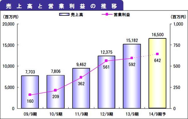 2014年9月期は、売上高が前期比8.7%増、営業利益が同8.5%増と増収増益基調が続く見通し。アフィリエイト広告が引き続き収益を牽引する。また、今期は各事業において更なる成長拡大を実現するための、基盤作りを進める年となりそうだ。インターネット広告事業ではスマートフォン向けの販売強化を進めるほか、O2Oマーケティング領域への展開も進めていく。
