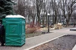 アルセナール駅に近い議事堂前のマリンスキー公園は、政府側が市内撹乱のために主として東部ウクライナから動員されたチトゥーシキ(Titushki)と呼ばれる暴力集団のキャンプ地であったが、多数の簡易トイレを残して昨晩のうちにすみやかに撤収した後だった。