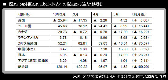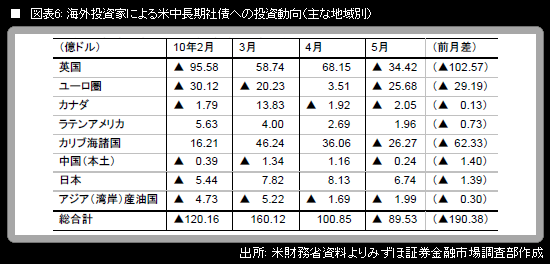 ペースダウンしつつもドルへの資金流入継続 5月の対米証券投資 上野 泰也 著者フォロー フォロー中 2010.7.20(火) Tweet 1 2 ギャラリーページへ ギャラリーページへ ギャラリーページへ 中長期国債については、5月は英国の買い越しと、日本の売り越しが目立った(図表4)。 残り688文字 全ての画像を見る(8枚) ここからは、JBpress Premium 限定です。 会員ログイン JBpress Premiumを無料で試す 初月無料 税込550円/月 全記事読み放題! カンタン登録!続けて記事をお読みください。詳細はこちら Premium会員に人気の記事 【自民党総裁選】小泉純一郎はルール変更追い風に初勝利、強者・権力者が「ゴールポスト」を動かした歴史 参政党の演説に在日コリアン3世の私が共感してしまった理由 AIが「働きたくても働けない人」と「働かなくてもいい人」を生成し始めた Tweet 経済観測 バックナンバー 一覧 【原油ウォッチ】米国のベネズエラ攻撃、イラン大規模デモ…地政学リスク急上昇でも原油60ドル台を回復しない理由 藤 和彦 インド経済が日本を抜く?実は「過大評価」の可能性、雇用難が成長の足かせ…日本にはインド人材の確保にチャンス 藤 和彦 高市政権で復活したリフレ派が重視した「マネー」に意味はあるか?金利上昇局面の今だからこそ異次元緩和を振り返る 河田 皓史 5年目に突入した超円安局面、終止符を打つために最低限必要なのはリフレ思想の撤回と中立金利までの利上げ 唐鎌 大輔 【2026年の世界経済】投資競争がAIから全方位に、分断は深まり貿易摩擦激化…ポスト・グローバル社会の方向性鮮明に 中島 厚志 【原油ウォッチ】中東情勢めぐり価格急落リスク、サウジに不満のUAEがOPECプラスを脱退する可能性 藤 和彦 フォロー機能について フォロー機能とは、指定した著者の新着記事の通知を受け取れる機能です。 フォローした著者の新着記事があるとヘッダー(ページ上部)のフォロー記事アイコンに赤丸で通知されます。 フォローした著者の一覧はマイページで確認できます。 ※フォロー機能は無料会員と有料会員の方のみ使用可能な機能です。 設定方法 記事ページのタイトル下にある「フォローする」アイコンをクリックするとその記事の著者をフォローできます。 確認方法 フォロー中の著者を確認したい場合、ヘッダーのマイページアイコンからマイページを開くことで確認できます。 解除方法 フォローを解除する際は、マイページのフォロー中の著者一覧から「フォロー中」アイコンをクリック、または解除したい著者の記事を開き、タイトル下にある「フォロー中」アイコンをクリックすることで解除できます。 ご登録 ログイン
