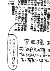 「もう戻れないということが信じられないというか、これからどうなっていくのかということが、じつに心配というか。振り向いたら、ぼくのいたとこがまだ遠くに見えるんですけどね。ではまた、って言えないのがとても残念です」というファクスがいまにも音をたてて入って来そうな気がします。