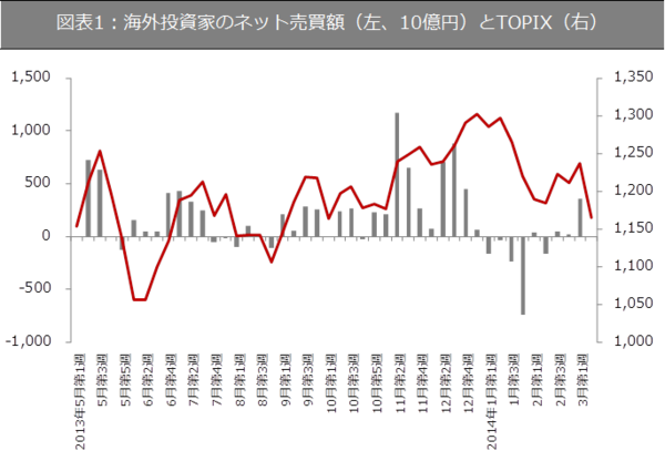 ●2014年に入って、アベノミクスの具体策が見えない中、外国人に「変化がない」と見切られてしまった可能性があります。