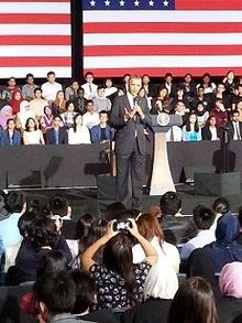 マレーシア訪問中、マラヤ大学で行われたタウンホールミーティング「東南アジア10カ国の若きリーダーとの対話」の様子(筆者撮影)