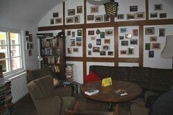 ロッテのリビング、壁には宿泊者の写真が飾られている