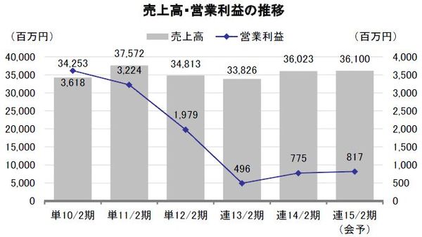 2015年2月期の業績においては、上期までは低迷が続くものの、同サービスの導入効果が顕在化する第3四半期(2014年9月-11月期)以降は売上高も回復に転じる見通しで、商品力強化やコスト適正化も同時に進めていくことで、通期での増収増益を見込んでいる。今後の成長戦略としては、既存事業の再成長に加えてWEBへの進出、CRM(顧客管理)ビジネスの強化、海外への展開などを掲げている。また、注目する経営指標として今後はROE(株主資本利益率)を意識した経営を行っていく方針で、現在潤沢にある手元資金の有効活用を図るため、M&Aも前向きに検討していく考えだ。