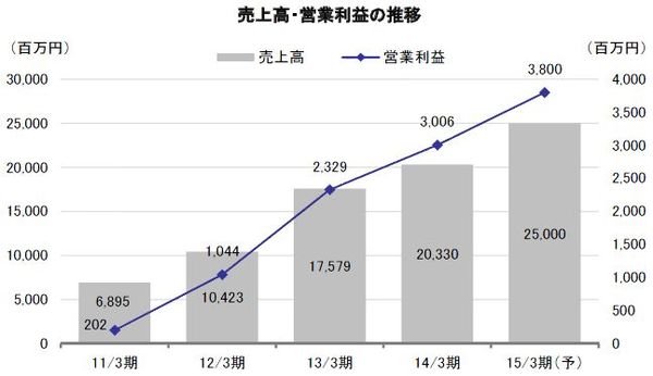 この3つの特長・強みがうまく機能し続けたことにより、同社の収益は現在、急速に拡大している。5月9日に発表した2014年3月期の連結決算では、前期における繰延税金資産計上の影響から、当期純利益こそ減益となったものの、売上高、営業利益、経常利益は揃って3期連続で2ケタの成長率を達成、過去最高を更新した。オンライン事業、コンシューマ事業、音楽映像事業の3セグメントすべてで収益を拡大した。