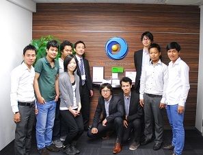 日系IT企業ヘッドウォータース本社にて。海外事業担当の日本人メンバーとカンボジア人ITスタッフたち(写真提供:筆者、以下同)