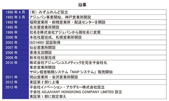 アジュバンコスメジャパン(4929東証1部) 今中計は新規事業への参入など大きなチャレンジに挑む フィスコ 著者フォロー フォロー中 2014.6.28(土) シェア9 Tweet 1 2 3 4 5 6 7 ギャラリーページへ 同社は、安心・安全な自然派化粧品を、美容サロンを通じて消費者に提供するファブレス企業だ。自然派化粧品を開発・製造(外注委託)し、そこにカウンセリングというプロ 残り7302文字 ここからは、JBpress Premium 限定です。 会員ログイン JBpress Premiumを無料で試す 初月無料 税込550円/月 全記事読み放題! カンタン登録!続けて記事をお読みください。詳細はこちら Premium会員に人気の記事 【自民党総裁選】小泉純一郎はルール変更追い風に初勝利、強者・権力者が「ゴールポスト」を動かした歴史 参政党の演説に在日コリアン3世の私が共感してしまった理由 AIが「働きたくても働けない人」と「働かなくてもいい人」を生成し始めた シェア9 Tweet 本日の新着 一覧 年間8万人を超える失踪者はどのように生きているのか?彼らの人生が映し出す死ぬよりも逃げるという選択肢 【著者に聞く】『ルポ失踪』の松本祐貴が語る、失踪したそれぞれの理由とその後の人生 長野 光 | 松本 祐貴 「日本版DOGE」は生命保険料控除に切り込むべき理由、年末調整の時期に考えたい保険料控除の話 【ミニマル金融のススメ】 我妻 佳祐 大河ドラマ『べらぼう』大奥を動かした影の実力者・大崎とは何者か、「表は定信・奥は大崎」を解く 真山 知幸 毛沢東や鄧小平の時代とは違う、強大国となった習近平時代の中国は「台湾」で妥協しない、その虎の尾をなぜ安易に… 【舛添直言】商売でやっている保守系雑誌の真似をして、威勢のいいことを言うのは政治家の仕事じゃない 舛添 要一 企業調査レポート - FISCO バックナンバー 一覧 「バクセル」の薬事承認取得に向けた開発活動を推進 フィスコ 14/11期は大幅増収増益、グループシナジーを活かした成長へ基盤づくり フィスコ 14/12期はファクトリー事業が好調、不動産事業も急拡大 フィスコ 業務用の八百屋として国内最大、食の安全に対する意識の高まりで取引拡大 フィスコ 技術系エレクトロニクス商社、業界最大手とタッグを組みビジネス展開 フィスコ 中古車オークション運営最大手、15期連続増配を予想 フィスコ フォロー機能について フォロー機能とは、指定した著者の新着記事の通知を受け取れる機能です。 フォローした著者の新着記事があるとヘッダー(ページ上部)のフォロー記事アイコンに赤丸で通知されます。 フォローした著者の一覧はマイページで確認できます。 ※フォロー機能は無料会員と有料会員の方のみ使用可能な機能です。 設定方法 記事ページのタイトル下にある「フォローする」アイコンをクリックするとその記事の著者をフォローできます。 確認方法 フォロー中の著者を確認したい場合、ヘッダーのマイページアイコンからマイページを開くことで確認できます。 解除方法 フォローを解除する際は、マイページのフォロー中の著者一覧から「フォロー中」アイコンをクリック、または解除したい著者の記事を開き、タイトル下にある「フォロー中」アイコンをクリックすることで解除できます。 ご登録 ログイン