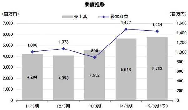 2014年3月期の業績は、「アミティーザ」が国内、米国市場で伸びたことで、売上高が前期比23.4%増、経常利益が同65.9%増と好調な決算となった。続く2015年3月期は国内向けに「アミティーザ」の拡大が続くものの、「レスキュラ」の減収や治験費用の増加などにより、売上高は前期比2.6%増、経常利益は同2.9%減と前期並みの水準が見込まれる。