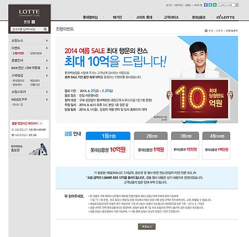 賞金10億ウォンのセール(ロッテ百貨店ホームページ)