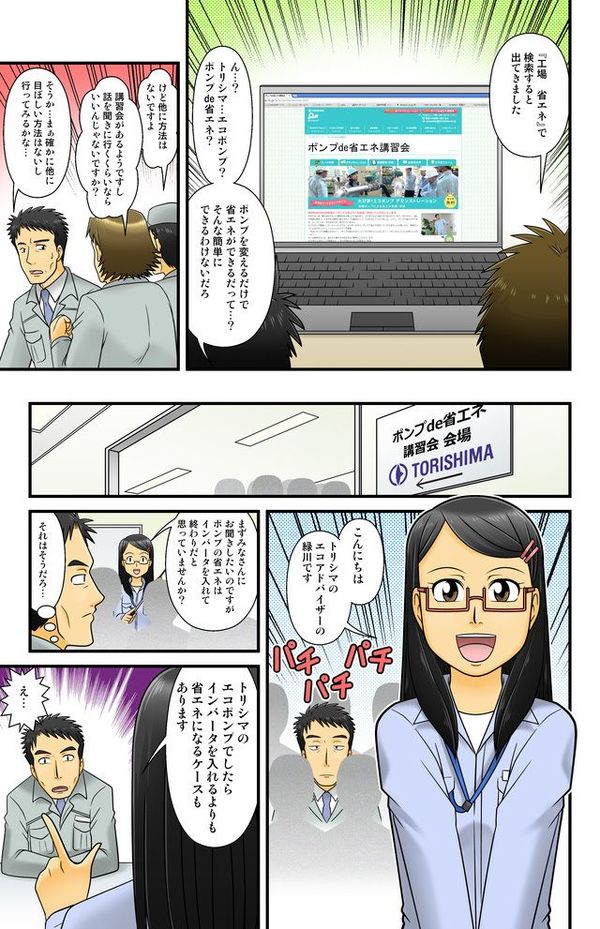• 省エネ対策で頭を悩ませている工場長・森。“ポンプで省エネ”は実現できるのか!?