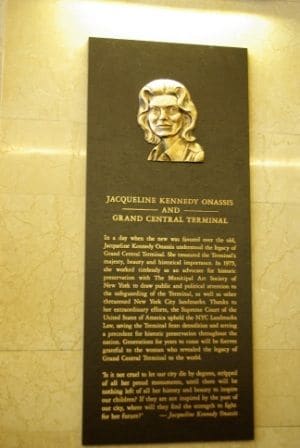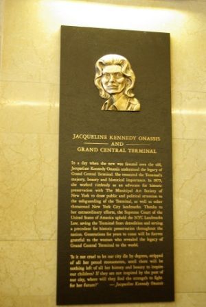 元大統領夫人でニューヨーカーのアイコンとして著名なジャクリーン・ケネディ・オナシスさん(1929~1994)が同駅の保存活動に尽力したことを称え、功績を記したブロンズ板や、少女時代からケネディ大統領と結婚したファーストレディ時代、同駅の保存活動の姿など、その人生をスライドショーで紹介している。