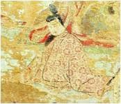 聖徳太子は言わずと知れた飛鳥時代の人物で、『源氏物語』とは何の関係もありません。しかし、面白いことに、飛鳥時代の人であるはずの聖徳太子たちが、絵の描かれた時代の平安期の服装で出てくるのです。『聖徳太子絵伝』が描かれたのは1069年。つまり、『源氏物語』が書かれた50年ほど後の作品なので、同じく150年後の『源氏物語絵巻』に描かれている装束よりも、はるかに、『源氏物語』の時代に近い姿と考えられるのです。