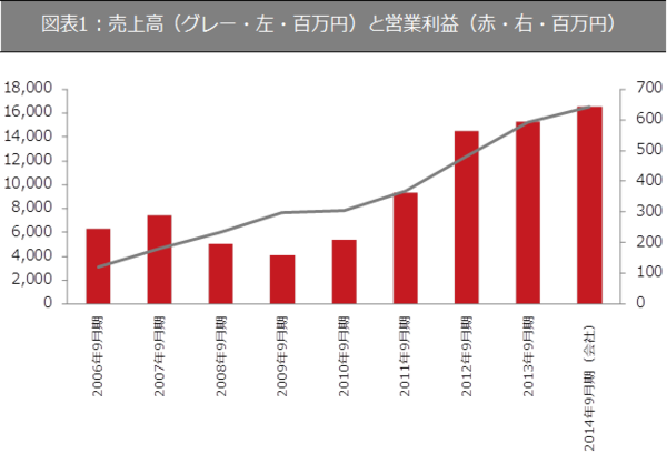 2014年9月期は過去最高益が射程圏内。営業利益は2006年上場時比2.6倍!
