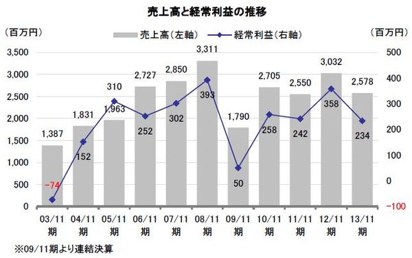 第3四半期以降は、半導体装置を中心としたエレクトロニクス事業が好調に推移するほか、ペリテックのEMI(電磁ノイズ)テスタも中国向けの受注本格化が見込まれる。このため、2014年11月期の通期業績は、売上高で前期比43.5%増の3,700百万円、経常利益で同49.1%増の350百万円程度の達成が可能だと弊社ではみている。