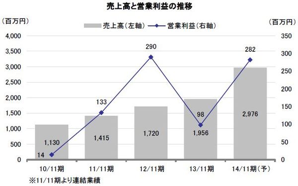 ●14/11期計画は据え置き、業務提携先開拓で業績拡大見込み