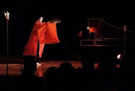 Matsuura氏の能とクラシック音楽のバッハの曲とを組み合わせた「能-バッハ Noh-Bach」は、2013年にカナダ・ケベックで初披露。世界的に有名なハープシコード奏者 Frédérick Haas 氏との同公演は、2014年9月末にオランダ・ドルトレヒトで開催のバッハフェスティバルで再公演する(写真: Sylvain Laroche)