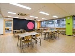 学びのメインスペースである2階は、柱や壁のない開放感あふれた草原のようなフロアです。とある著名な空間デザイナーに設計してもらったという色分けされた各ゾーンには、プロジェクターやスクリーン(兼ホワイトボード)が設置されています。