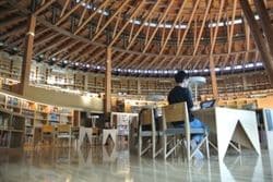 秋田杉をふんだんに使った図書館。蔵書は大半が洋書
