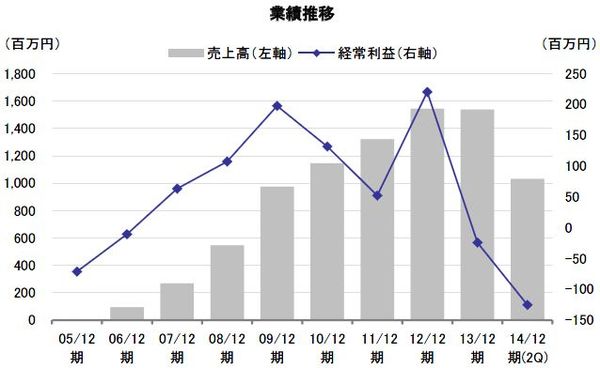 2014年12月期第2四半期累計(2014年1-6月期)の業績は、売上高が前期比19.2%増の1,031百万円、営業利益は105百万円の損失(前年同期は142百万円の利益)となった。樹状細胞ワクチン「バクセル®」の薬事承認取得に向けた開発費の増加や、認知度向上に向けたマーケティング費用の増加、新規事業の立上げ負担など将来の成長に向けた先行費用が増加したのが主因だ。通期業績についても状況はほぼ同様で、売上高は前期比32.5%増と拡大するものの、営業利益は316百万円(同23百万円の利益)の損失が見込まれる。