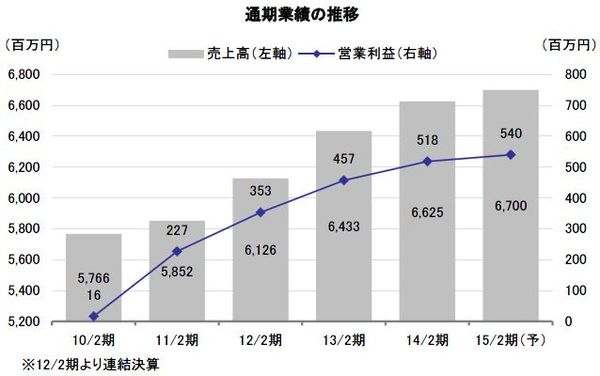 なお、2015年2月期通期の業績予想は据え置いたが、本社移転による業務の効率化はまだまだ進む状況にあり、想定外のリスクや、M&Aによる固定費増などのコストアップ要因が発生しない限り、業績が予想を上振れる可能性が極めて高いと言えよう。配当性向も従来の30%から35%に上げ、利益成長に伴う増配の期待も高まるだろう。