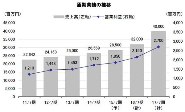 2015年7月期の業績予想について同社は、売上高を前期比7.3%増の28,500百万円、営業利益を同8.0%増の1,850百万円と引き続き増収増益を見込んでいる。好調な広告市場を背景に大手代理店経由のTV-CM制作案件と広告主との直接取引がそれぞれ伸長する想定と見られる。また、業績予想には織り込んでいないものの、戦略的M&Aによる海外展開も本格化する計画であり、その動向によっては業績の上振れ要因となる可能性も考えられる。