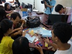 図画工作を経験したことがないカンボジア人スタッフ