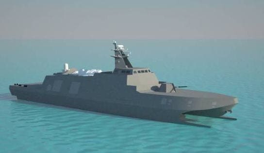 この艦は満載排水量約600トンで全長は60.4メートル、全幅は14メートル、船体はステルス設計のうえ、速度の出る双胴船型を採用、最高速力は38ノット、航続距離は約2000海里、乗員41人で武装は以下のものを搭載すると言う。