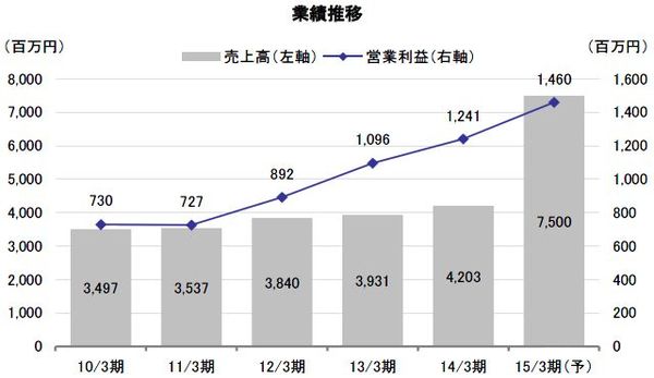 2015年3月期の第2四半期(2014年4月-9月)決算は、売上高が前年同期比53.1%増の3,489百万円、営業利益が同24.7%減の611百万円と大幅な増収ながら減益となった。ビーコンIT連結化が増収に寄与したものの、事業構造変革に伴う先行費用の増加などが利益を圧迫した。同社は、2015年3月期を事業構造再構築元年として位置付けており、業績は一旦踊り場を迎える前提となっているが、売上高を前期比78.4%増の7,500百万円、営業利益を同16.8%増の1,380百万円と見込んでいる。