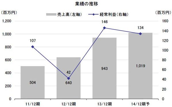 2014年12月期の連結業績は、売上高が前期比8.1%増の1,019百万円、営業利益が同7.0%減の147百万円と増収減益になる見通し。「クチコミ@係長」などクラウドサービス事業の売上高が伸び悩むなかで、人員増強による人件費の増加が減益要因となる。中堅企業向けのサービス継続率が低いことが要因であり、こうした課題に対して同社では年末から来年初めにかけて、「クチコミ@係長」「e-mining」を中堅企業のニーズに対応したリニューアル版を投入していくほか、スマートデバイスにも対応するなど、利便性の向上を図ることで、継続率の向上を図り、売上高の2ケタ成長を目指していく方針。