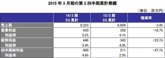 2015年3月期の第2四半期業績
