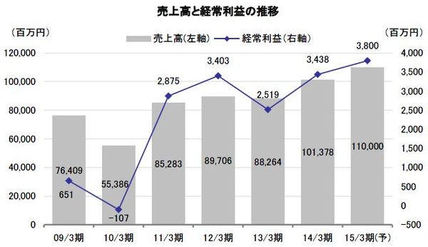業績面での安定感は高い。2015年3月期の中間期決算は、売上高と当期純利益が中間期における過去最高を更新して着地した。有機EL関連や太陽光関連の需要減少の影響を、産業機械向けやアミューズメント向けなどの需要増加で吸収した。商材と顧客の両面で、幅広いラインアップを有する同社の強みが出た形となった。今下期以降も、好調な需要の状況に加えて、同社自身の取り組み(エンジニアリング事業や成長市場分野の開拓)などが貢献し、現在の会社予想に沿った形で推移していくと弊社ではみている。