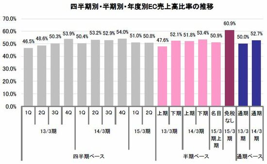 EC比率の向上は想定通り、インバウンド売上増は想定外 シュッピン(3179東証マザーズ) フィスコ 著者フォロー フォロー中 2015.1.31(土) シェア6 Tweet 1 2 3 4 5 6 7 8 ギャラリーページへ 月次売上高数値を見ると、EC売上高比率は月ごとにばらつきはあるものの、基本的には右肩上がりで推移しており、直近の2014年10月月次においては、インバウンド観 残り8413文字 ここからは、JBpress Premium 限定です。 会員ログイン JBpress Premiumを無料で試す 初月無料 税込550円/月 全記事読み放題! カンタン登録!続けて記事をお読みください。詳細はこちら Premium会員に人気の記事 【自民党総裁選】小泉純一郎はルール変更追い風に初勝利、強者・権力者が「ゴールポスト」を動かした歴史 参政党の演説に在日コリアン3世の私が共感してしまった理由 AIが「働きたくても働けない人」と「働かなくてもいい人」を生成し始めた シェア6 Tweet 本日の新着 一覧 「中国が『EUV露光装置』試作機完成」の衝撃…世界の半導体秩序は抜本的に書き換えられてしまうのか? 莫大なカネとヒトをつぎ込んだファーウェイ、中国半導体版「マンハッタン計画」の行方 湯之上 隆 歯の治療費250万、孫へ贈与が500万…退職金が「蒸発」し、年金が「枯渇」する恐怖 「そこそこの貯蓄」があっても安心できない、年金生活者を襲う想定外の出費 森田 聡子 かつて「野球弱小県」ながら野球熱の高かった新潟県、今は子どもの未来を第一に県球界一丸で取り組む「先進県」に 広尾 晃 「連休で仕事が休みになっちゃって。3000円くらい貸してもらえませんか」大型連休で干からびる派遣高齢者の日常 【令和版おじさんの副業NEO】所持金500円の派遣高齢者が大型連休を乗り切った方法(前編)【JBpressセレクション】 若月 澪子 企業調査レポート - FISCO バックナンバー 一覧 「バクセル」の薬事承認取得に向けた開発活動を推進 フィスコ 14/11期は大幅増収増益、グループシナジーを活かした成長へ基盤づくり フィスコ 14/12期はファクトリー事業が好調、不動産事業も急拡大 フィスコ 業務用の八百屋として国内最大、食の安全に対する意識の高まりで取引拡大 フィスコ 技術系エレクトロニクス商社、業界最大手とタッグを組みビジネス展開 フィスコ 中古車オークション運営最大手、15期連続増配を予想 フィスコ フォロー機能について フォロー機能とは、指定した著者の新着記事の通知を受け取れる機能です。 フォローした著者の新着記事があるとヘッダー(ページ上部)のフォロー記事アイコンに赤丸で通知されます。 フォローした著者の一覧はマイページで確認できます。 ※フォロー機能は無料会員と有料会員の方のみ使用可能な機能です。 設定方法 記事ページのタイトル下にある「フォローする」アイコンをクリックするとその記事の著者をフォローできます。 確認方法 フォロー中の著者を確認したい場合、ヘッダーのマイページアイコンからマイページを開くことで確認できます。 解除方法 フォローを解除する際は、マイページのフォロー中の著者一覧から「フォロー中」アイコンをクリック、または解除したい著者の記事を開き、タイトル下にある「フォロー中」アイコンをクリックすることで解除できます。 ご登録 ログイン