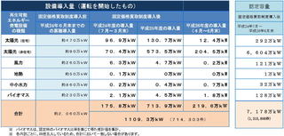 固定買取価格制度における再生可能エネルギー発電設備の導入状況 平成26年9月末時点(平成26年12月24日更新)「固定価格買取制度 情報公表用ウェブサイト」より