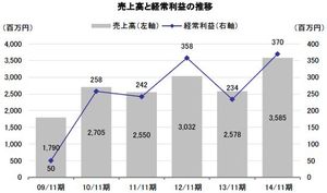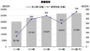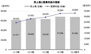 2015年3月通期業績は期初予想から上方修正され、売上高215,000百万円(前期比3.9%増)、営業利益5,000百万円(同28.6%増)、経常利益5,000百万円(同27.6%増)、当期純利益3,500百万円(同41.9%増)が予想されているが、最大の商機である年末商戦の動向次第では、更なる上方修正の可能性もありそうだ。