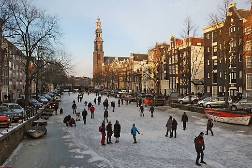 アムステルダムの凍った運河でスケートを楽しむ人々(写真提供:Droomplekken.nl)