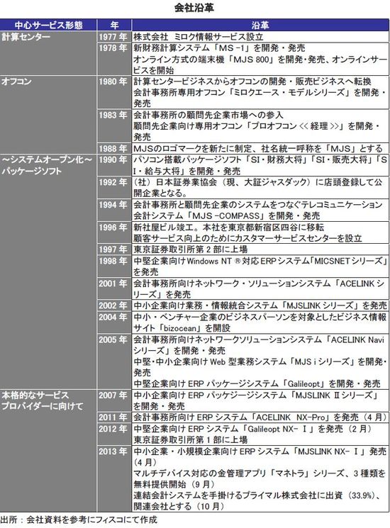 持続的な成長と新たな収益基盤の確立で過去最高業績の更新へ ミロク情報サービス(9928東証1部) フィスコ 著者フォロー フォロー中 2015.2.14(土) シェア8 Tweet 1 2 3 4 5 6 7 8 ギャラリーページへ 会計事務所との信頼関係を活かしたビジネスモデル 残り7508文字 ここからは、JBpress Premium 限定です。 会員ログイン JBpress Premiumを無料で試す 初月無料 税込550円/月 全記事読み放題! カンタン登録!続けて記事をお読みください。詳細はこちら Premium会員に人気の記事 【自民党総裁選】小泉純一郎はルール変更追い風に初勝利、強者・権力者が「ゴールポスト」を動かした歴史 参政党の演説に在日コリアン3世の私が共感してしまった理由 AIが「働きたくても働けない人」と「働かなくてもいい人」を生成し始めた シェア8 Tweet 本日の新着 一覧 首都圏では「年収1000万円」でも安心してマンションを購入できない時代、高望みせずに買えるエリアはどこか 【JBpressセレクション】 山下 和之 赤門、安田講堂、イチ公、上野英三郎博士と「ハチ」……異色の東京大学ガチャはなぜ生まれたのか? 安田講堂の建物の傷まで再現、原型師が見せた驚きのこだわりと東京大学が示した知と遊びのハイブリッド 尾松 洋明 「エモグラム」記事盗用問題、1年前の毎日新聞に学べなかった産経新聞、経営難の2社で続いた不祥事は偶然ではない 【西田亮介の週刊時評】PV狙ってスベる新聞社、「戦略的撤退」が検討される時期にきた 西田 亮介 【書評】『後継者不足時代の事業承継』〜事業承継と女性のキャリア形成、「当事者」による葛藤についての論考〜 評者:安川 新一郎(東京大学客員研究員 グレートジャーニー合同会社代表) 安川 新一郎<Hon Zuki !> 企業調査レポート - FISCO バックナンバー 一覧 「バクセル」の薬事承認取得に向けた開発活動を推進 フィスコ 14/11期は大幅増収増益、グループシナジーを活かした成長へ基盤づくり フィスコ 14/12期はファクトリー事業が好調、不動産事業も急拡大 フィスコ 業務用の八百屋として国内最大、食の安全に対する意識の高まりで取引拡大 フィスコ 技術系エレクトロニクス商社、業界最大手とタッグを組みビジネス展開 フィスコ 中古車オークション運営最大手、15期連続増配を予想 フィスコ フォロー機能について フォロー機能とは、指定した著者の新着記事の通知を受け取れる機能です。 フォローした著者の新着記事があるとヘッダー(ページ上部)のフォロー記事アイコンに赤丸で通知されます。 フォローした著者の一覧はマイページで確認できます。 ※フォロー機能は無料会員と有料会員の方のみ使用可能な機能です。 設定方法 記事ページのタイトル下にある「フォローする」アイコンをクリックするとその記事の著者をフォローできます。 確認方法 フォロー中の著者を確認したい場合、ヘッダーのマイページアイコンからマイページを開くことで確認できます。 解除方法 フォローを解除する際は、マイページのフォロー中の著者一覧から「フォロー中」アイコンをクリック、または解除したい著者の記事を開き、タイトル下にある「フォロー中」アイコンをクリックすることで解除できます。 ご登録 ログイン