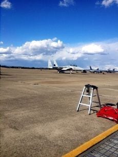 百里基地にて。1機の戦闘機を飛ばすだけでも多くの隊員サポートと資源を要する(写真提供:筆者、以下同)今回のIS(いわゆる「イスラム国」)による日本人人質問題の後、今後の自衛隊の役割についての議論が進む中、これは留意すべき大切な点である。