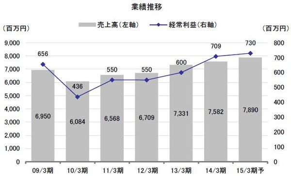 2015年3月期の業績は売上高で前期比4.1%増の7,890百万円、経常利益で同2.8%増の730百万円と期初計画を据え置いている。通期計画に対する経常利益の進捗率は45.9%となっているが、同社の収益は下期偏重型となっていることから、今後市場環境に変化がなければ、利益ベースでは若干の上乗せ余地があるとみられる。2016年3月期に向けた新たな取り組みとしては、提携する地域金融機関が抱える中小企業約7,500社を直接対象としたコンサルティングサービスを強化していく。人材育成や事業承継などの経営戦略分野だけでなく、セールスプロモーションなどの販売戦略分野も含めたコンサルティングサービスを一気通貫で提供できる強みを活かしていく。「地方創生」が国の成長戦略の重要テーマとして位置付けられるなかで、地域密着型で全国各地域に事業基盤を有する同社にとっては、中堅・中小企業の変化と成長を支援する戦略パートナーとして、成長機会の増大につながるものとして期待される。