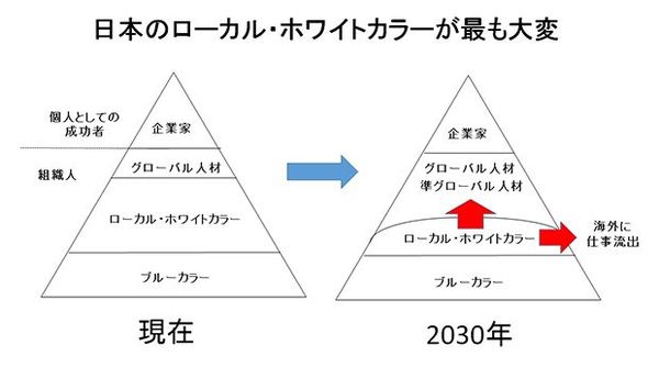 将来的には、グローバル基準の数千万円の報酬を得られる人がいる一方で、ローカルな待遇しか得られない人は200万~500万円の所得にとどまることを覚悟した方がいいです。
