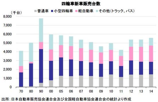 軽自動車の躍進は目覚ましく、2014年の構成比は新車で40.9%、中古車で45.3%に高まった。特に、一家で複数台の自動車を所有するローカルエリアでの需要が高い。