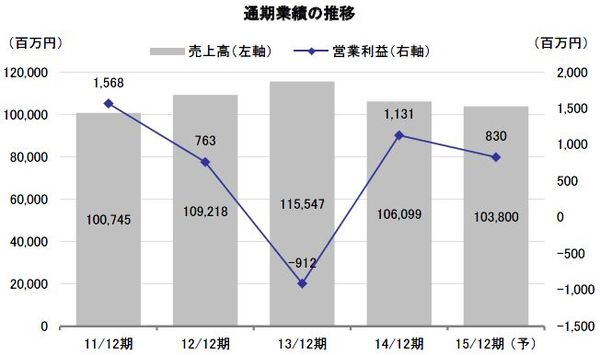 2015年12月期は、売上高103,800百万円(前期比2.2%減)、営業利益830百万円(同26.7%減)、経常利益780百万円(同28.4%減)、当期純利益500百万円(同26.8%減)と予想されている。主力の米穀事業は前年に引き続き数量減が見込まれること、仕入れ・販売価格が低位で推移していること、2015年産米の価格が不透明であることなどから減収・減益予想となっている。ただしかなり堅めの予想であり、海外事業の収益拡大、食品事業の採算改善等が見込まれていることなどから上方修正の可能性はありそうだ。