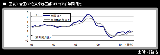 国際商品市況から影響を受けやすい品目が除去されているため、消費者物価の基調をより明確に示していると考えられる「食料(酒類を除く)及びエネルギーを除く総合」(いわゆる欧米型コア)は、前年同月比▲1.5%で、マイナス幅は前月から変わらなかった。