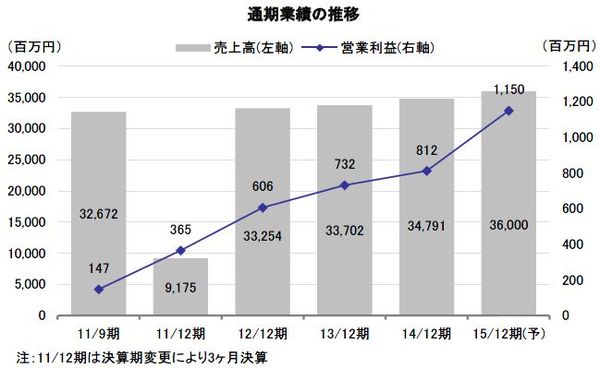 2014年12月期決算は、天候不順や円安による食材費や光熱費の高騰などの影響で苦戦したものの、3期連続の増収増益を達成した。2015年12月期は、天候が通年どおりであれば、増収増益のベースができることになる。マイナス要素としては食材費や労務費の上昇が懸念されるが、同社は社内努力でマイナス要素を吸収できると自信を見せている。最も重要なトップライングロースは、同社の新規出店・業態転換戦略によるところが大きいが、同社は全体で18店の新規出店、3店の業態転換、5店の閉店をそれぞれ計画している。出店数はさらに増加する可能性があるため収益の上積みも期待できる。