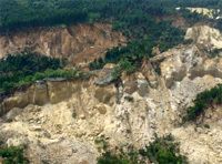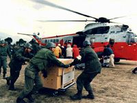 最近の都市型災害・中山間地の災害の特徴を災害現場の写真を基に観察すると、交通網が遮断されるため、ヘリコプターによる初動対応が重要であることが分かる。