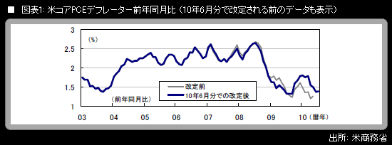 8月30日に発表された米7月の個人所得・個人消費では、連邦準備理事会(FRB)が最も注目している物価指標であるコア個人消費支出(PCE)デフレーターが前月比+0.1%という予想通りの結果。前年同月比は+1.4%で、前月と同率になった。しかし、小数点以下2ケタまで取ると、6月分が前年同月比+1.36%、7月が同+1.38%で、わずかに上向いた。また、住宅バブル崩壊に直面した米国の家計がバランスシート調整を意外に進捗させているエビデンスだとしてバーナンキFRB議長が8月27日の講演で取り上げた個人貯蓄率(8月30日作成「米長期金利が急上昇」参照)は、7月は5.9%。6月の6.2%からは下がったものの、ここ4カ月は6%前後の水準を固める動きになっている。