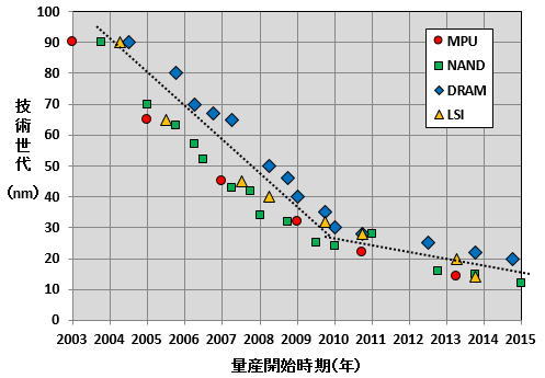 リード後半の「創意工夫をこらして価値を生み出すスタイルへの転換」について異論はない。というより、今さら強調して言うほどのことではない。というのは、2007年頃から米テキサス・インスツルメントをはじめとして、最先端の微細化を放棄する半導体メーカーが次々と現れたからだ。