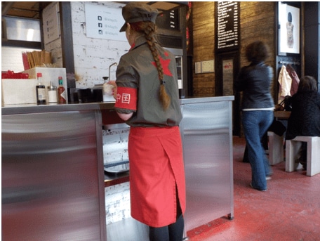 ロシアに登場した新しい形の中華レストラン「キタイチ」。文化大革命時の近衛兵を模したデザインのコスチュームが目を引く