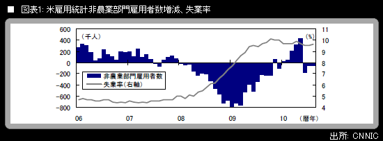 当面の市場動向のカギを握るイベントとして市場が注目していた米8月の雇用統計が、9月3日に発表された。民間部門の雇用者数は+6万7000人(前月差、以下同じ)となり、市場予想の中心であった+4万1000人よりも強い数字になった。6月分は+3万1000人から+6万1000人へ、7月分は+7万1000人から+10万7000人へ、それぞれ大幅に上方修正された(上方修正幅の合計は+6万6000人)。米国経済が「日本型デフレ」に陥るのではないかといった、筆者からみると「行き過ぎた悲観論」に属している市場の思惑は、さらに後退。米長期金利は上昇した。