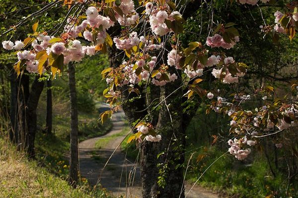 4月の終わりごろから、春は一気にやって来る。草木の芽吹きがもこもこと、日ごとに山を盛り上げる。冬の間むき出しだった人家が、その厚みの中に包み込まれていくようだ。