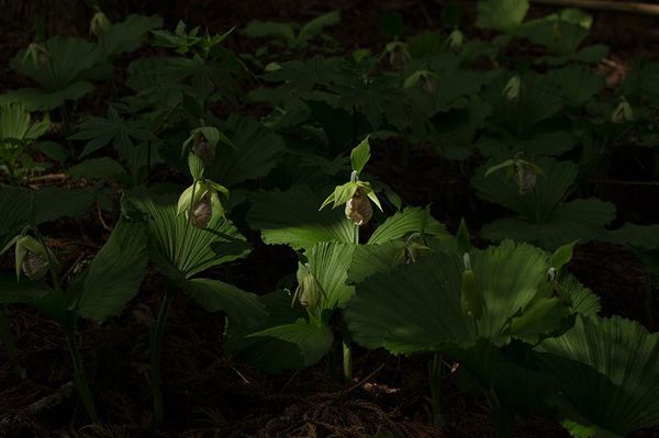 福島でクマガイソウといえば福島市水原の群生地が有名で、毎春の開花時期には「クマガイソウの里まつり」が開催され多くの来訪者を集めるが、飯舘村にも数十株のクマガイソウが杉林の中に小さな群落をかたちづくっている場所がある。